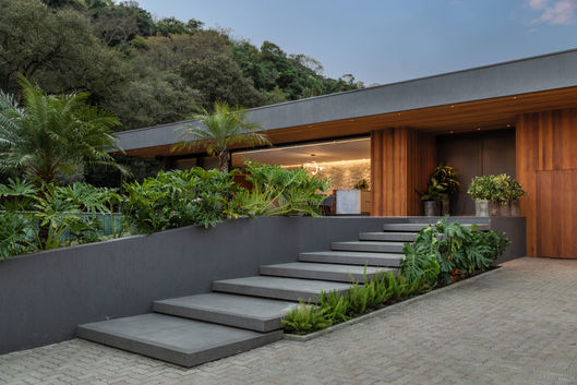 A linguagem simples da Casa DC se destaca em meio às linhas sinuosas da natureza. Uma harmonia entre o natural e o construído, para a família que busca em sua própria casa uma conexão com as mesmas belezas que exploram durante suas viagens.